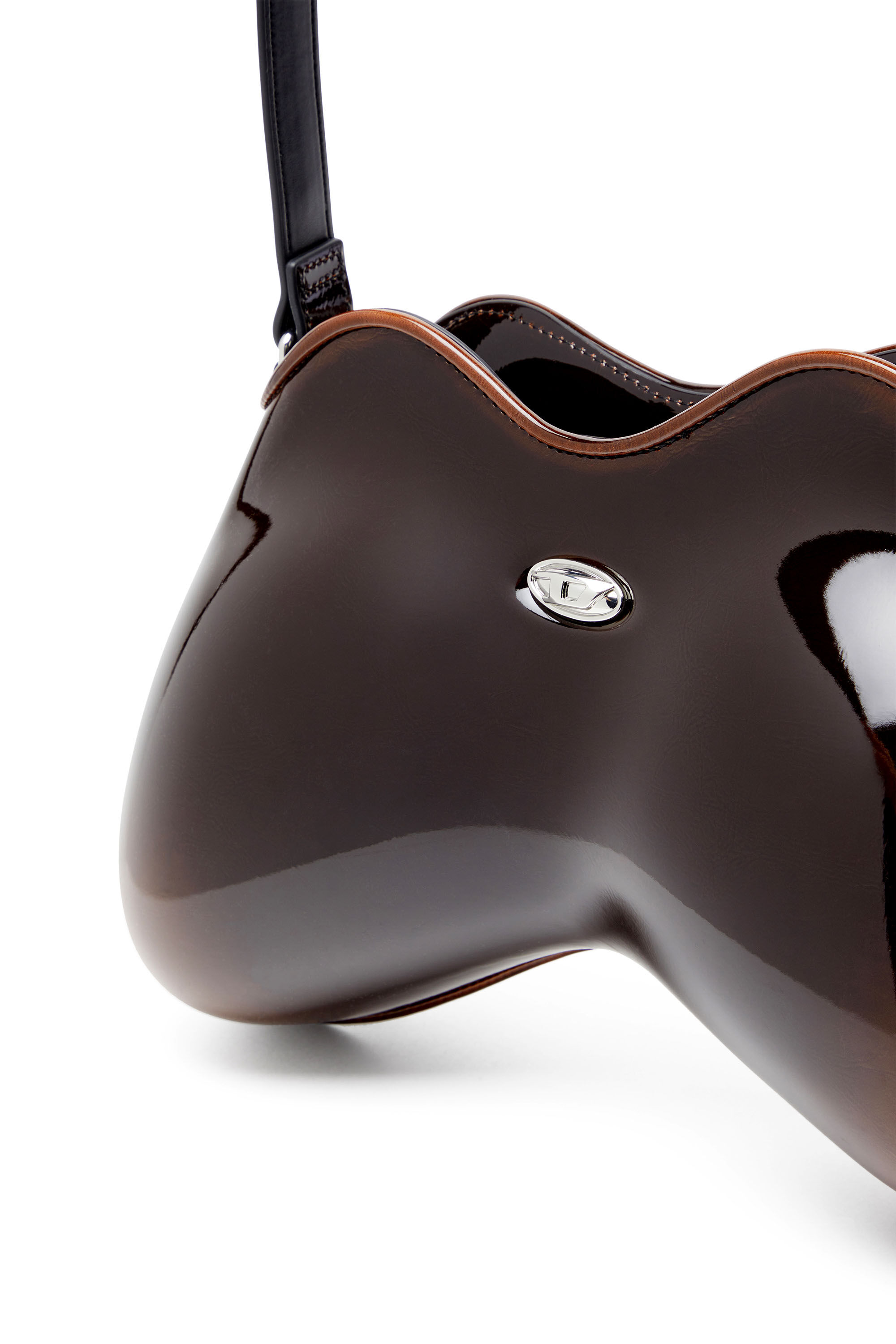 A three-dimensional take on the coveted Play, this new iteration of the iconic controller-shaped bag is cheekily dubbed the 'Double D'. Provocative and suggestively buxom, it has a soft-touch rigid construction in ultra glossy pull-up PU: where the material is stretched over the roundness of the bag, it creates a dégradé fade, translating into an incredible depth of colour. The front panel is decorated with a metal Oval D rivet. The organic shape is ultra-comfortable to carry under the arm and has a fixed shoulder strap.